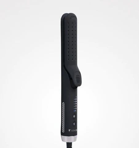 The Coolfan straightener has a built in cool air fan which sets the curl as you style. This speeds up styling, resulting in less damage to the hair, more shine and longer lasting curls.